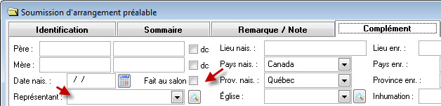 - Ajout d'un champ de saisie dans la section « Complément » des soumissions et dépôts de volontés pour indiquer le représentant (voir image précédente);